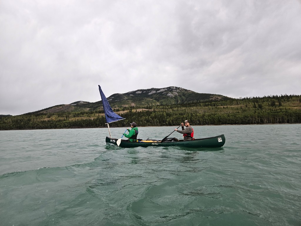 We entered the lake on Day 1, and the wind was strong. We were getting tossed around, so we decided to pull off the lake and find a spot to camp for the night. Over the next day and a half, we paddled the lake, and though we were never forced off the water again, we faced a lot of wind, rolling waves, and multiple sudden shifts in wind direction. We also encountered a mix of sun and rain. For an in-depth look at our paddle on Lake Laberge, including the stunning Thirty Mile section, be sure to check out our full adventure in our other blog post here!