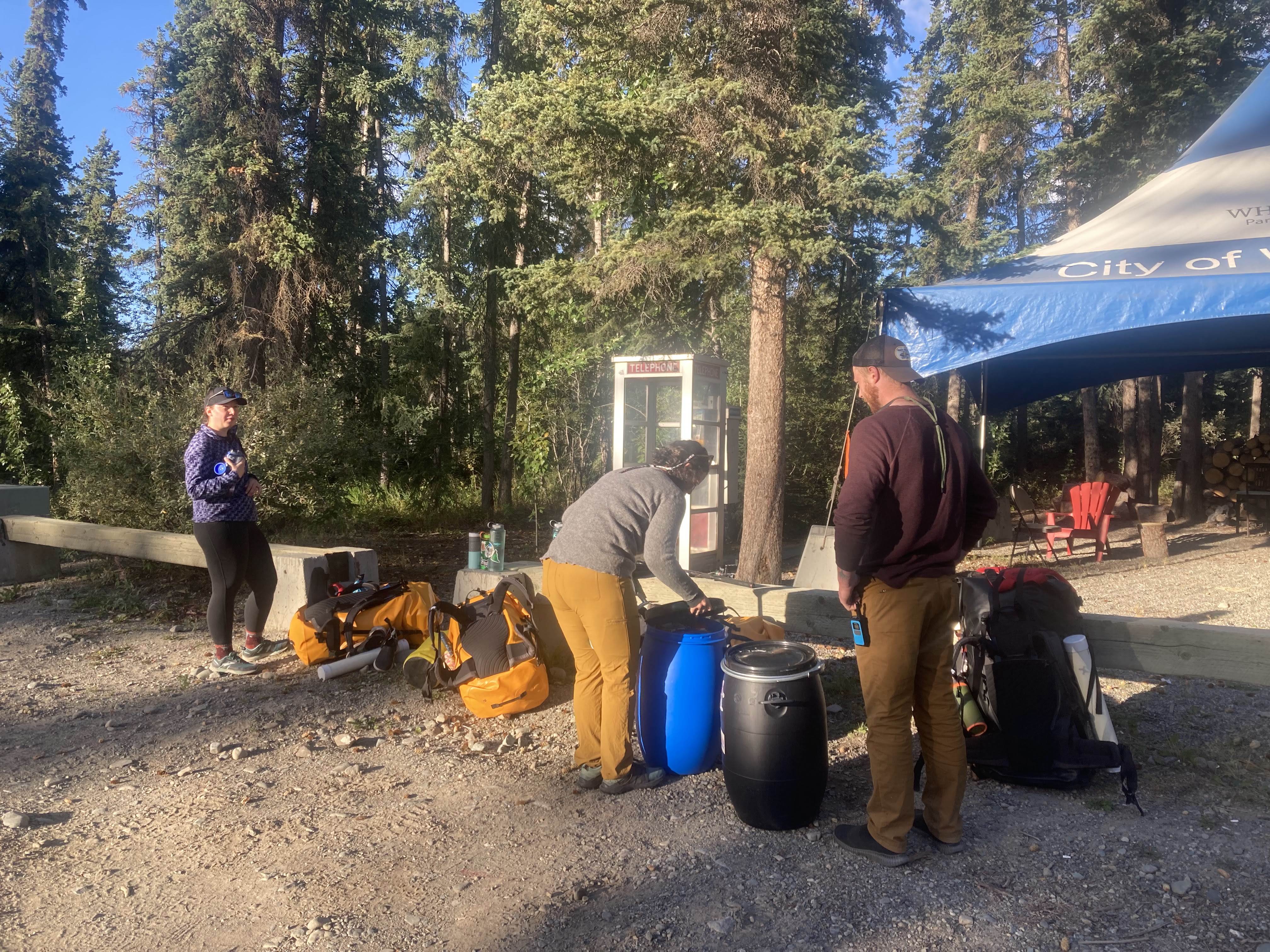 After spending a couple of nights at the Robert Service Campground, we were ready to launch on September 1st. Since our truck had been dropped off in Dawson City the day before, we didn’t have it available to store anything. However, the campground staff were kind enough to let us store our food barrels in the main office for the rest of the day and night. We picked them up from the office before heading to Kanoe People via cab at 9:00 AM to get started.